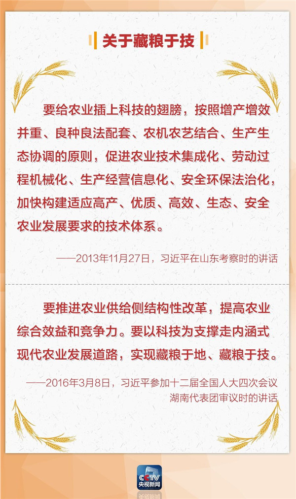 2013年11月,習(xí)近平在山東農(nóng)科院召開座談會時表示,手中有糧,心中不慌。保障糧食安全對中國來說是永恒的課題,任何時候都不能放松。