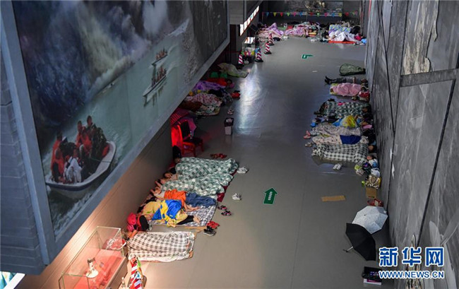 8月21日,汶川縣映秀鎮(zhèn)部分受暴雨災害影響的群眾被安置在汶川特大地震震中紀念館。新華社記者 張超群 攝