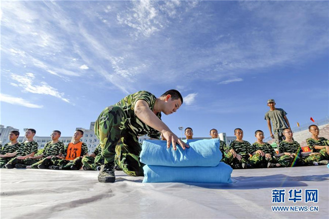 8月25日,河北省遵化市第一中學學生進行內(nèi)務整理訓練。新華社記者 牟宇 攝