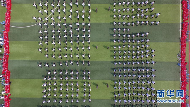 8月27日,河北省衡水市第二中學(xué)高一新生進(jìn)行入學(xué)軍訓(xùn)(無人機(jī)拍攝)。新華社記者朱旭東攝