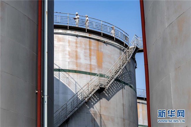 8月25日,中儲(chǔ)糧襄陽(yáng)直屬庫(kù)職工在油品存儲(chǔ)區(qū)巡查。