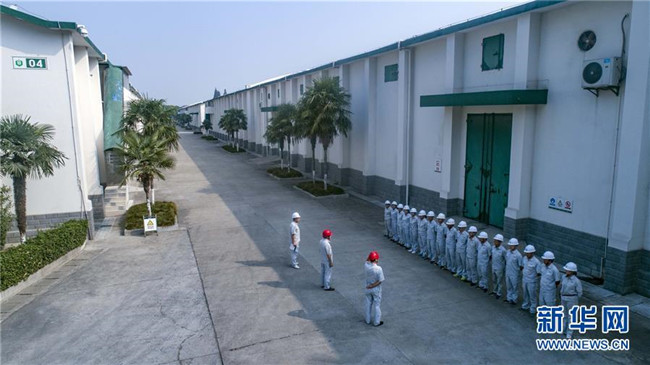 8月26日,中儲(chǔ)糧襄陽(yáng)直屬庫(kù)職工在召開(kāi)班前會(huì)(無(wú)人機(jī)拍攝)。