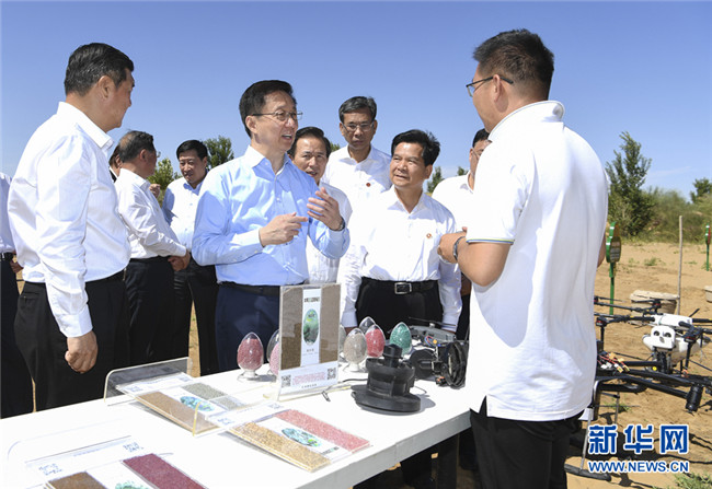8月26日至27日,中共中央政治局常委、國(guó)務(wù)院副總理韓正到內(nèi)蒙古自治區(qū)鄂爾多斯市,就庫(kù)布其沙漠防沙治沙和生態(tài)建設(shè)情況進(jìn)行調(diào)研。這是8月27日,韓正在那日沙科技植樹(shù)區(qū),考察運(yùn)用技術(shù)創(chuàng)新植樹(shù)治沙工作開(kāi)展情況。新華社記者 張領(lǐng) 攝