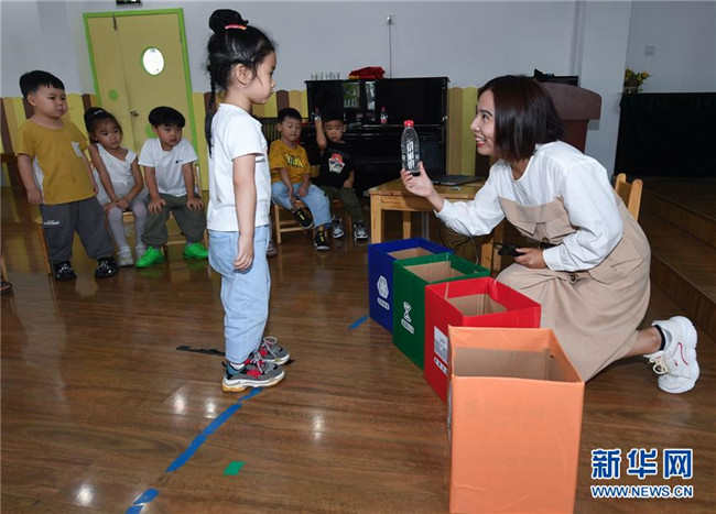 9月4日,老師給孩子們講解垃圾分類的知識(shí)。