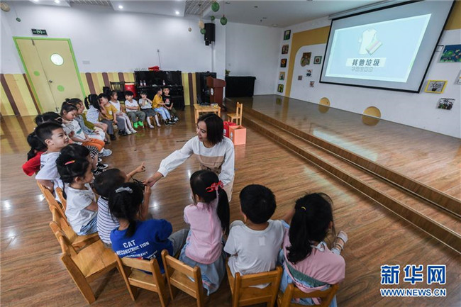 當(dāng)日,浙江省湖州市織里鎮(zhèn)晟舍幼兒園的小朋友們迎來(lái)了開學(xué)第一課——垃圾分類課。幼兒園通過(guò)請(qǐng)小朋友觀看幻燈片、動(dòng)畫短片以及進(jìn)行趣味游戲等方式,讓孩子們?cè)陂_學(xué)之初了解垃圾分類知識(shí)和垃圾分類的重要性。據(jù)了解,織里鎮(zhèn)所有幼兒園和中小學(xué)目前都已經(jīng)將垃圾分類常識(shí)課放入到學(xué)校日常課程中。 新華社記者 徐昱 攝