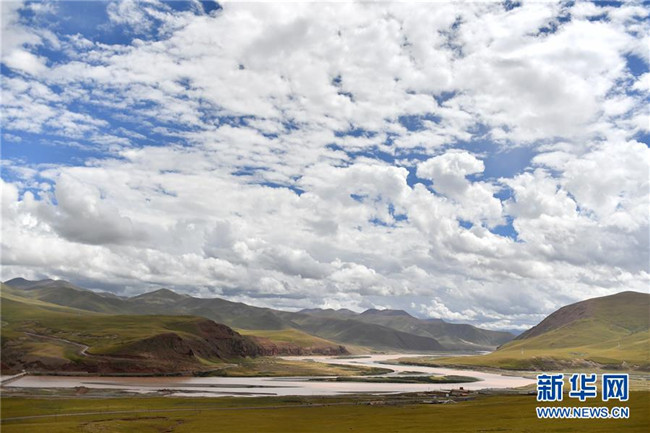 青海省玉樹(shù)藏族自治州治多縣被稱(chēng)為長(zhǎng)江源頭第一縣,這是長(zhǎng)江源頭通天河在該縣的一處轉(zhuǎn)彎(9月12日攝)。新華社記者孫瑞博攝