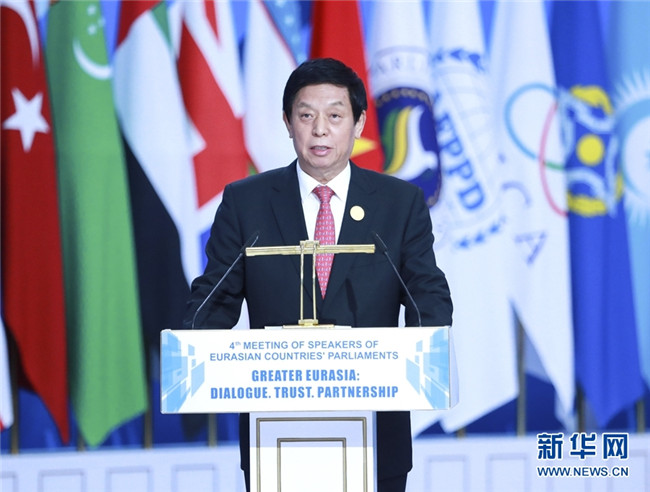 第四屆歐亞國家議長會議24日在哈薩克斯坦首都努爾蘇丹舉行。全國人大常委會委員長栗戰(zhàn)書出席會議開幕式并作主旨發(fā)言。
