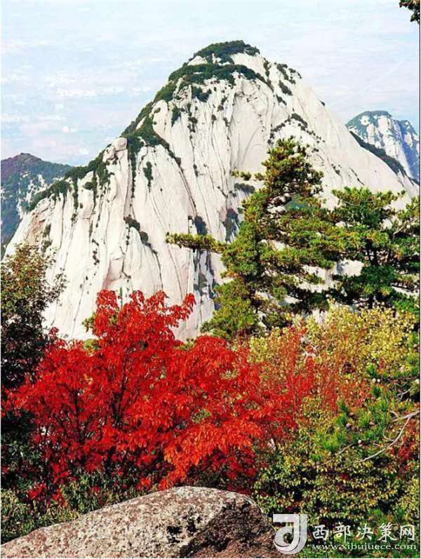 深秋,被收獲過(guò)的大地,裸露著年復(fù)一年的坦誠(chéng)。華山的紅葉是一種渾然天成、不加修飾的美。云淡風(fēng)輕、紅葉晚霞,郎才女貌,天然絕配。華山紅葉依托青山白云,無(wú)疑中便蘊(yùn)含大自然神秘的面紗,也吸引名人志士的不懈探索與尋覓,天然造成鐘靈毓秀,是珍稀植物的棲息隱居良地。
