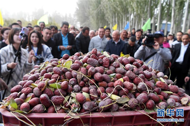10月19日在新疆且末縣英吾斯塘鄉(xiāng)阿瓦提村有機紅棗園拍攝的紅棗。