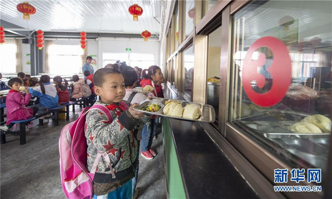 自實(shí)施農(nóng)村義務(wù)教育學(xué)生營養(yǎng)改善計(jì)劃以來,寧夏回族自治區(qū)積極為農(nóng)村學(xué)子提供免費(fèi)的營養(yǎng)餐。從去年開始,寧夏固原市西吉縣的免費(fèi)營養(yǎng)午餐迎來了升級(jí)換代,從原來的一道燴菜變成了如今的兩素一葷,餐具由餐桶換成了餐盤。在保證營養(yǎng)膳食搭配的同時(shí),增加了學(xué)生的自主選擇性。從“吃得飽”到“吃得好”,升級(jí)換代的營養(yǎng)餐得到了廣大學(xué)生認(rèn)可。 新華社發(fā)(楊植森 攝)