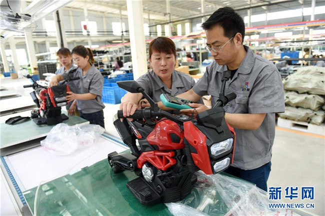 河北省邢臺經濟開發(fā)區(qū)一家民營玩具生產企業(yè)的工人對產品進行出廠檢測(5月29日攝)。新華社記者 朱旭東 攝