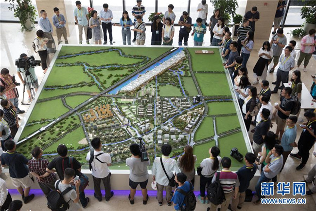 在上海臨港松江科技城沙盤前,參觀者聽取建設(shè)規(guī)劃(8月13日攝)。 G60科創(chuàng)走廊是利用長三角區(qū)位優(yōu)勢、良好的產(chǎn)業(yè)基礎(chǔ)和高校科研機(jī)構(gòu)集中等特點(diǎn)打造的區(qū)域協(xié)同創(chuàng)新發(fā)展的重要平臺,將成為長三角更高質(zhì)量一體化發(fā)展的重要引擎。新華社記者 金立旺 攝