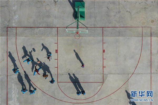 11月19日,在新疆于田縣達里雅布依鄉(xiāng)易地扶貧搬遷安置點的新學(xué)校,課間休息時,孩子們在水泥操場上打籃球。在該校位于塔克拉瑪干沙漠腹地的舊址,孩子們平時只能在沙土地上玩耍。新華社記者沈伯韓攝