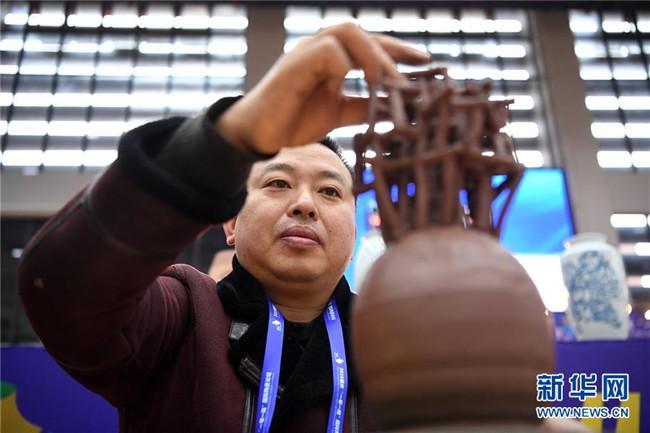 12月1日,參賽選手在陶藝技能大賽現(xiàn)場(chǎng)制陶。新華社記者唐奕攝