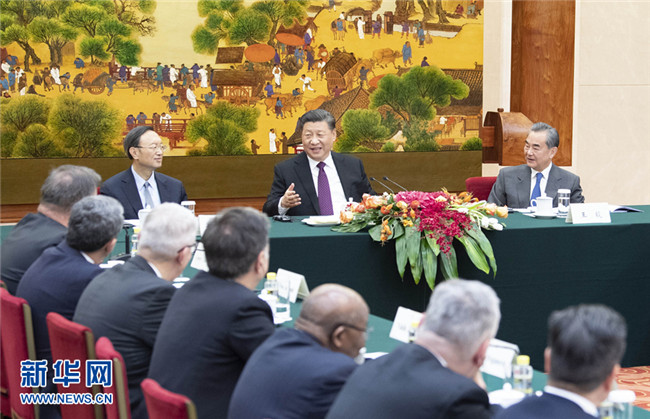 國家主席習(xí)近平3日在人民大會堂會見出席“2019從都國際論壇”外方嘉賓。