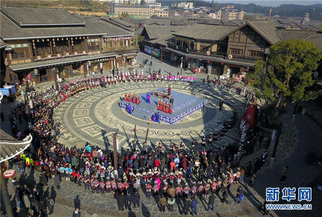 12月7日無(wú)人機(jī)拍攝的丹寨縣“祭尤節(jié)”活動(dòng)現(xiàn)場(chǎng)。新華社記者 楊文斌 攝