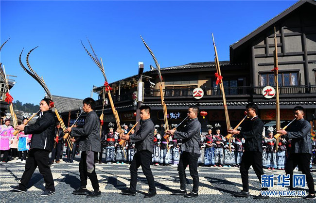 12月7日,苗族群眾在丹寨縣“祭尤節(jié)”活動(dòng)上吹奏蘆笙。新華社記者 楊文斌 攝