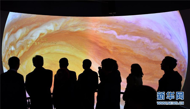 12月14日,觀眾參觀藏域星球天文科普體驗(yàn)館。當(dāng)日,藏域星球天文科普體驗(yàn)館在西藏拉薩開(kāi)館試運(yùn)營(yíng),這是西藏第一家天文科普體驗(yàn)館。據(jù)介紹,此館以感知宇宙、認(rèn)知宇宙、探索宇宙為主題,以參觀者的第一感官體驗(yàn)為設(shè)計(jì)導(dǎo)向,利用互動(dòng)投影、懸浮投影、物體跟蹤、人體捕捉、體感互動(dòng)、VR等高科技手段展示藏地的神秘,揭示宇宙的奧秘。新華社記者李鑫攝