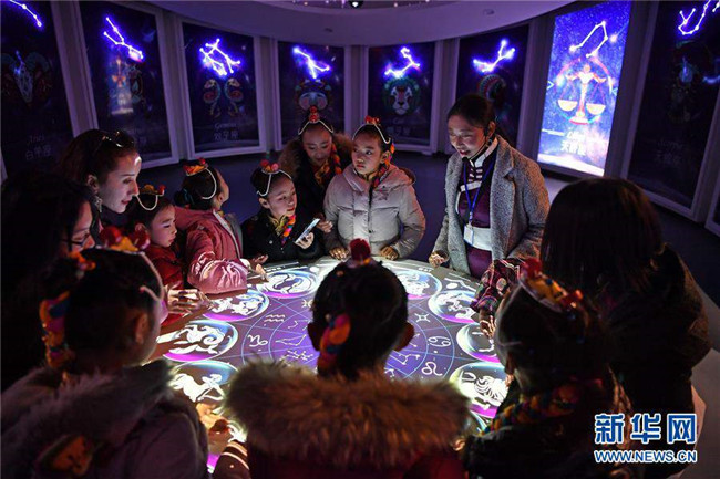 12月14日,拉薩市實(shí)驗(yàn)小學(xué)學(xué)生在藏域星球天文科普體驗(yàn)館學(xué)習(xí)星座知識(shí)。當(dāng)日,藏域星球天文科普體驗(yàn)館在西藏拉薩開(kāi)館試運(yùn)營(yíng),這是西藏第一家天文科普體驗(yàn)館。據(jù)介紹,此館以感知宇宙、認(rèn)知宇宙、探索宇宙為主題,以參觀者的第一感官體驗(yàn)為設(shè)計(jì)導(dǎo)向,利用互動(dòng)投影、懸浮投影、物體跟蹤、人體捕捉、體感互動(dòng)、VR等高科技手段展示藏地的神秘,揭示宇宙的奧秘。新華社記者李鑫攝