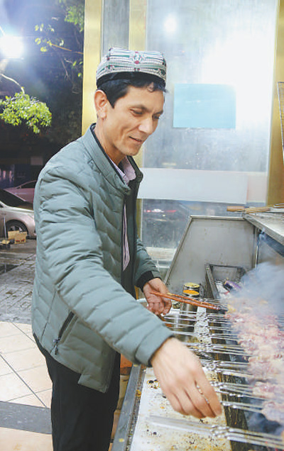 曾在阿布拉江烤肉王餐廳做過(guò)服務(wù)員的如則托合提夫婦,去年從和田老家來(lái)到南昌,經(jīng)過(guò)一年多學(xué)習(xí),今年5月選擇“單飛”,開(kāi)了一家屬于自己的燒烤店。“租門(mén)面、搞裝修,都是阿卜杜拉一手幫我弄的,還提供了兩萬(wàn)元啟動(dòng)資金。”談起眼下的生活,如則托合提非常滿(mǎn)意。