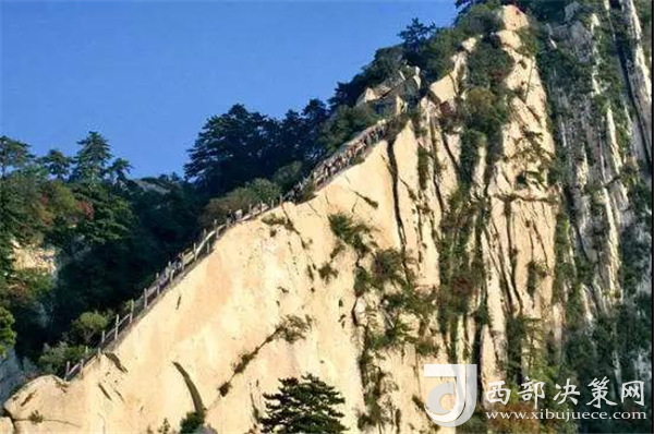 千百年前,陡峭如削的華山,艱險(xiǎn)異常,難以登攀,只能望山興嘆、遠(yuǎn)而望之。后來(lái)人們循猿徑,依山就勢(shì),巧妙地利用天設(shè)地造的石隙嶺脊,開(kāi)鑿出了登山道路,始有天下奇觀“自古華山一條路”。