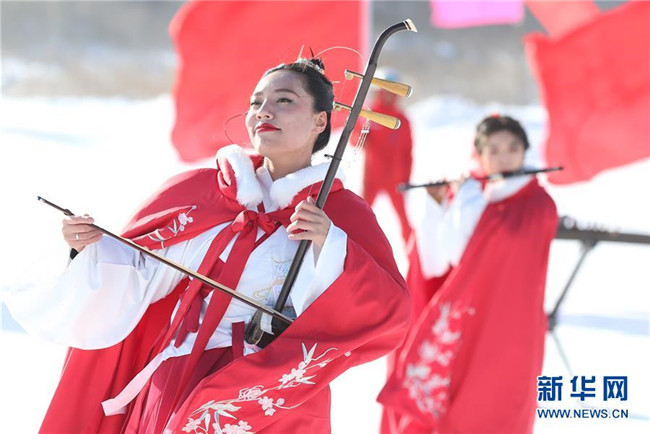 12月26日,表演者在啟動(dòng)儀式上表演。當(dāng)日,寧夏固原首屆冰雪文化旅游節(jié)在涇源縣婭豪國際滑雪場(chǎng)開幕。本屆冰雪文化旅游節(jié)以“相約六盤山·歡樂冬季游”為主題,將冰雪資源、文化旅游和體育賽事相結(jié)合,吸引游客參觀游玩。新華社記者賈浩成攝