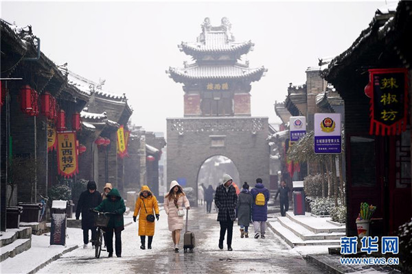 當(dāng)日,山西省平遙縣迎來(lái)降雪,雪中的平遙古城銀裝素裹,美景如畫。平遙古城是目前中國(guó)保存最完整的古代縣級(jí)城池之一,1997年被列入世界文化遺產(chǎn)名錄。新華社記者詹彥攝