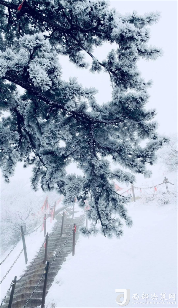 2020年第一場雪,紛紛揚(yáng)揚(yáng)灑落華山之巔。圣潔的雪花把華山妝扮得分外妖嬈嫵媚,平日陡峭的巖石,象穿著潔白的羽衣,宛若天仙般亭亭玉立于峰頭路旁,似向游人拂疑,微笑致意,最讓為之從心里震顏起敬的是,華山雪中松樹的雄姿與風(fēng)情。