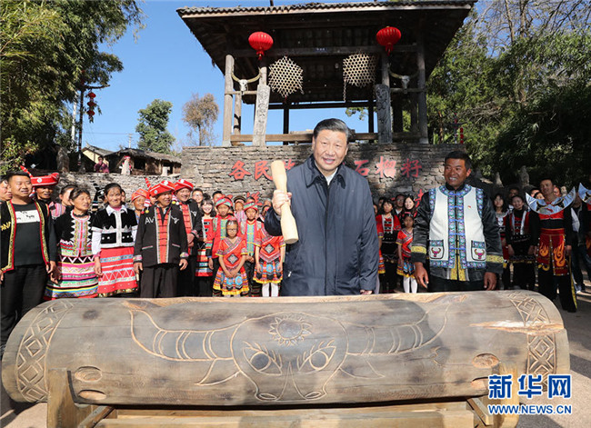 春節(jié)前夕,中共中央總書記、國家主席、中央軍委主席習(xí)近平赴云南考察,看望慰問基層干部群眾。這是1月19日下午,習(xí)近平來到騰沖市清水鄉(xiāng)三家村中寨司莫拉佤族村看望鄉(xiāng)親們,走進(jìn)村民家中了解脫貧攻堅(jiān)情況,并向大家送上新春祝福。 新華社記者 謝環(huán)馳 攝