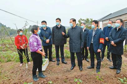 春回大地,正是春耕好時(shí)節(jié)。黎明村村民搶抓農(nóng)時(shí),有的在翻耕土地,有的正給田間作物澆水施肥,有的在播種早春玉米,一片忙碌景象。彭清華走進(jìn)村口的花椒基地,與套種茄子秧苗的村民親切交談,詢問栽種面積、土壤墑情、生長周期、市場銷路等情況。他說,一年之計(jì)在于春,切實(shí)抓好春耕生產(chǎn)對于實(shí)現(xiàn)全年豐產(chǎn)豐收意義重大。農(nóng)時(shí)不等人,要在嚴(yán)格落實(shí)防控措施的同時(shí),及時(shí)推進(jìn)春季農(nóng)業(yè)生產(chǎn)和生豬恢復(fù)生產(chǎn),因地制宜調(diào)整種養(yǎng)業(yè)結(jié)構(gòu),確保穩(wěn)產(chǎn)保供和農(nóng)民持續(xù)增收。有關(guān)部門要繼續(xù)做好服務(wù)保障,加強(qiáng)技術(shù)指導(dǎo),強(qiáng)化農(nóng)資儲備、調(diào)劑和配送,搞好產(chǎn)銷銜接,讓生產(chǎn)資料進(jìn)得來、農(nóng)產(chǎn)品賣得出。對隔離觀察群眾要做好生產(chǎn)扶持工作,幫助他們克服困難、不誤農(nóng)時(shí)。