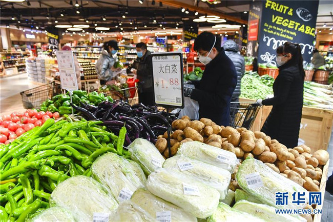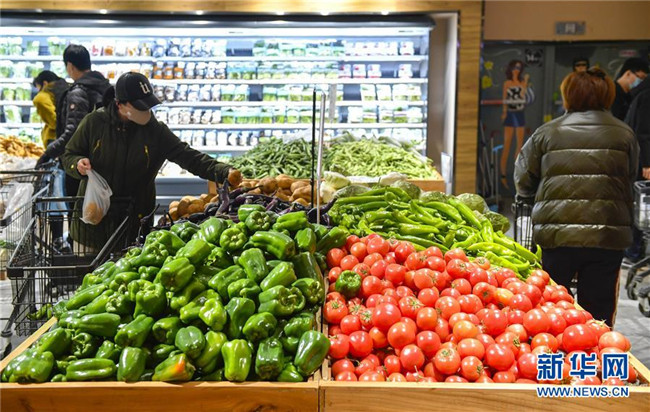 2月18日,在吉林省長(zhǎng)春市一家大型連鎖超市內(nèi),市民選購蔬菜。 新華社記者 許暢 攝