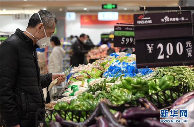 2月10日,顧客在湖北省武漢市江漢區(qū)中百倉儲(chǔ)超市北湖購物廣場(chǎng)店選購低價(jià)蔬菜。 新華社記者 李賀 攝