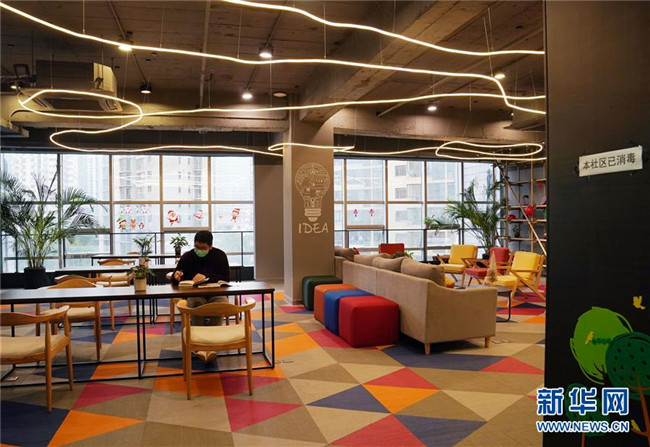 2月11日,一名白領(lǐng)在上海市靜安區(qū)的眾創(chuàng)辦公空間“印廂里”的公共休息區(qū)休憩。樓內(nèi)多數(shù)租戶和人員選擇在家辦公或輪流到崗。 新華社記者 劉穎 攝
