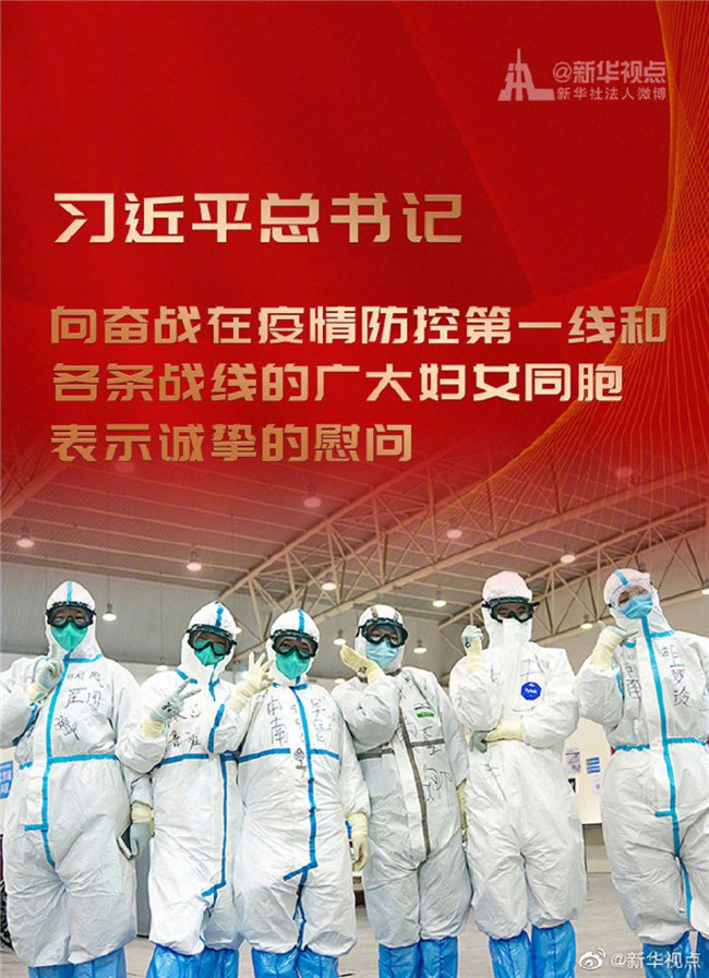 習(xí)近平向奮戰(zhàn)在疫情防控第一線和各條戰(zhàn)線的廣大婦女同胞表示誠摯的慰問