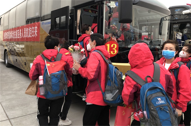 今天下午,載有寧夏第五批、第六批援湖北醫(yī)療隊(duì)隊(duì)員的包機(jī)降落在銀川河?xùn)|國(guó)際機(jī)場(chǎng)。今日撤離隊(duì)伍共有323人返回,其中320人乘機(jī)返回,3人駕駛緊急救援車返回?;貙幒?,各醫(yī)療隊(duì)醫(yī)務(wù)人員將分別由五市接回,在指定酒店接受14天醫(yī)學(xué)隔離。據(jù)了解,疫情以來,寧夏陸續(xù)派出六批援湖北醫(yī)療隊(duì)隊(duì)員共計(jì)785人,目前仍有8名疾控中心流調(diào)人員繼續(xù)在武漢、潛江支援。