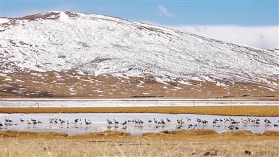 隆寶是青海省第一個國家級自然保護(hù)區(qū)。1984年建站之初只有22只黑頸鶴,如今已經(jīng)有超過216只在這里棲息。普布說,隆寶保護(hù)區(qū)的濕地東西長23千米,南北寬5千米,平均海拔4100多米,海拔高、地域?qū)拸V、水汽環(huán)境適宜,因此成為很多水鳥遷徙途中的驛站。