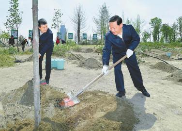四月八日,四川省委書記彭清華到成都市調研公園城市建設推進情況。在天府中央公園,彭清華與天府新區(qū)干部群眾一起植樹造林,為公園城市建設再添一抹綠、貢獻一份力。記者 歐陽杰 攝