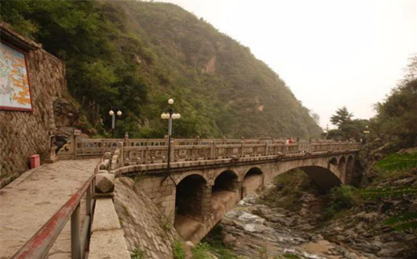 原潭側(cè)巖石上建有廟宇叫五龍宮,宮內(nèi)供有五位龍君,文化革命前殘?jiān)€在,“文革”后徹底毀廢。由于山洪原因,潭逐漸被碎石填塞,今已不復(fù)存在。唯潭上的五龍橋及橋頭上的大型五龍彩色壁畫依然向游人訴說著五龍?zhí)睹利惖膫髡f。橋欄鐫刻的“五龍橋”三字是當(dāng)時(shí)任中共中央書記處書記的胡喬木同志所書。