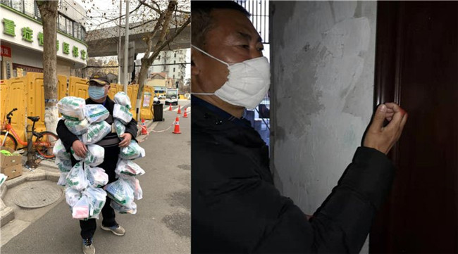 湖北武漢街頭邊,某社區(qū)網(wǎng)格員、被網(wǎng)友們親切稱為“藥袋哥”的豐楓把幾十個(gè)藥袋子串在一起掛在身上,照片被他人隨手拍下,感動(dòng)無數(shù)網(wǎng)友。那天,他早上5點(diǎn)多就守在了藥房門口,12個(gè)小時(shí)后終于拿齊了近100份藥。四川攀枝花的巷弄里,57歲的李松江每天走訪200多戶,其中多是老年住戶。“要有耐心,敲門的力氣要大一點(diǎn),這樣老人才聽得見。”每天敲門上千次后,他的指關(guān)節(jié)紅腫破皮……