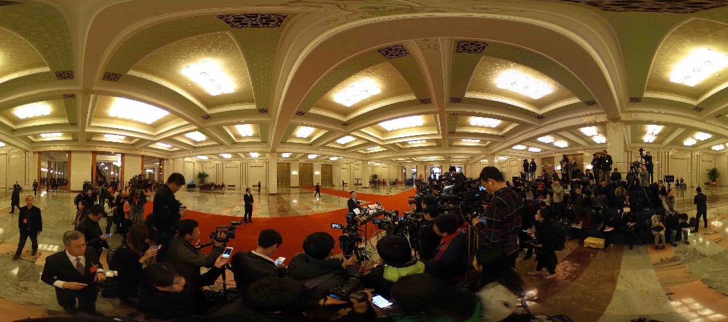 2016年3月16日,第十二屆全國人民代表大會第四次會議在北京人民大會堂舉行閉幕會。在“部長通道”首次有20多位部長主動發(fā)聲。這是記者在人民大會堂“部長通道”采訪。