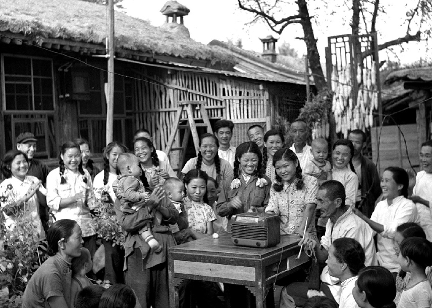 1954年9月15日至28日,第一屆全國人民代表大會第一次會議在北京召開。圖為北京郊區(qū)農(nóng)民收聽會議實(shí)況轉(zhuǎn)播的情形。