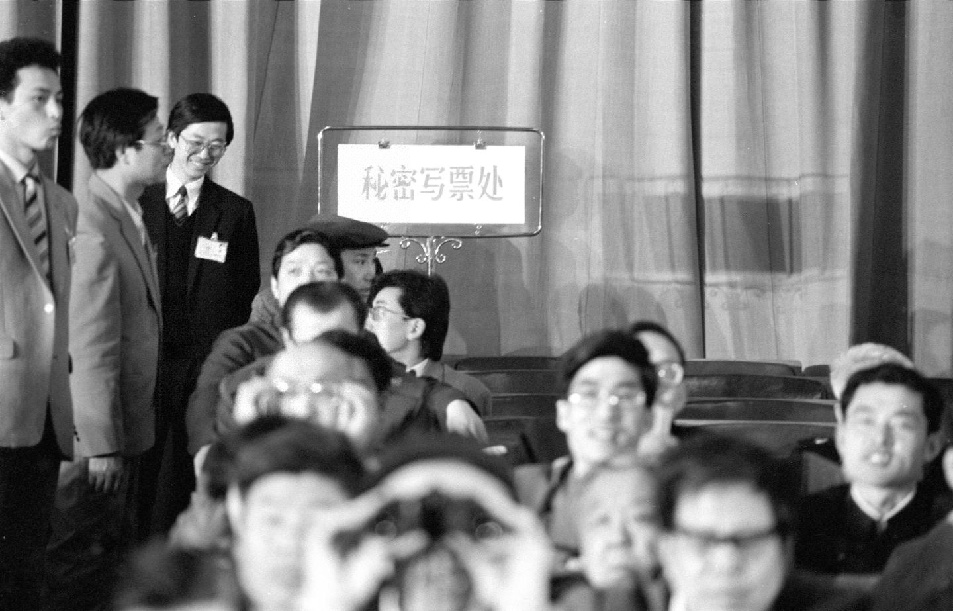 1988年4月,七屆全國人大一次會議第六次全體會議,投票選舉國家機(jī)構(gòu)領(lǐng)導(dǎo)人。圖為首次設(shè)立的秘密寫票處。