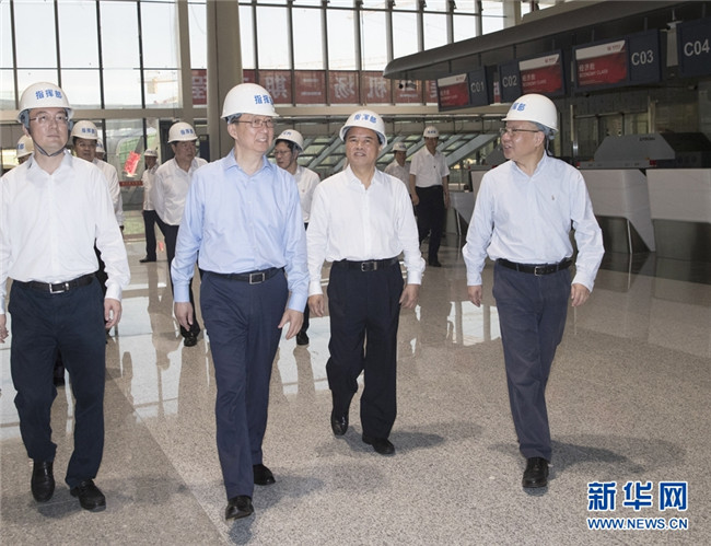 5月30日至31日,中共中央政治局常委、國務院副總理韓正在海南調(diào)研。這是5月30日,韓正在??诿捞m國際機場二期擴建項目施工現(xiàn)場,了解規(guī)劃建設和投產(chǎn)運營準備情況。 新華社記者 王曄 攝