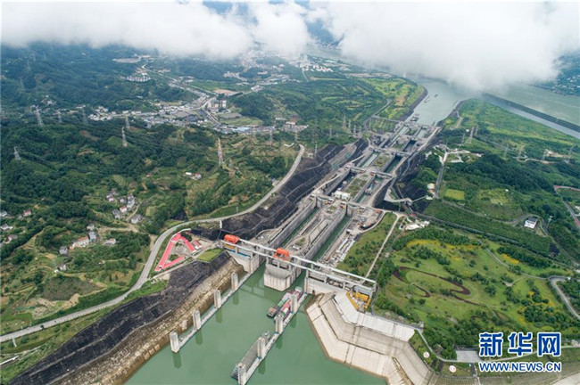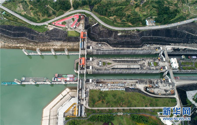 6月17日,船舶有序通過三峽五級船閘。新華社發(fā)(鄭家裕 攝)