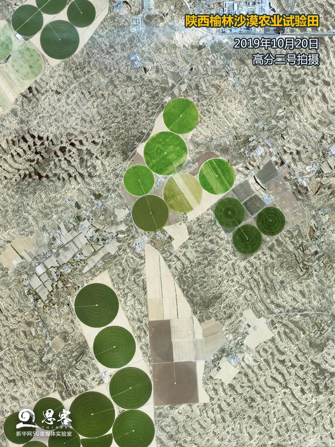 ▲圖為衛(wèi)星拍攝的陜西榆林沙漠農(nóng)業(yè)試驗(yàn)田。衛(wèi)星數(shù)據(jù)來(lái)源:高分二號(hào)