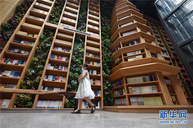 7月5日,在河北省定州市新華書店,一名小朋友從書架前走過。 新華社記者 朱旭東 攝