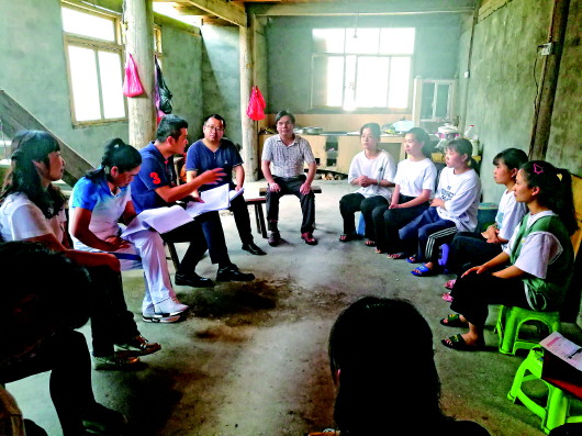 “山鳳凰”關愛基金資助管理單位人員與洪州鎮(zhèn)吝洞村在校大學生交流。受訪者供圖