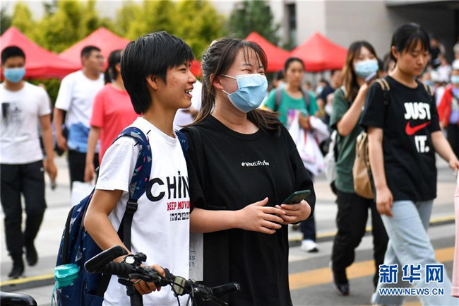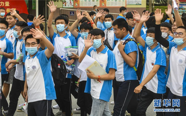 7月8日,河北文安縣第一中學(xué)考點(diǎn)的高考生走出考場(chǎng)。 當(dāng)日,全國部分地區(qū)2020年高考結(jié)束。 新華社記者 李曉果 攝