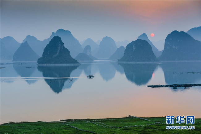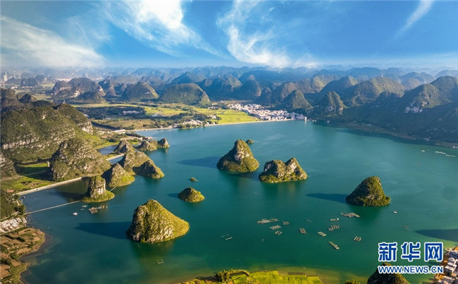 渠洋湖旅游風(fēng)景區(qū)是一個(gè)大型喀斯特湖泊,位于廣西靖西市西北方向,總面積近2500公頃,水面煙波浩渺,湖邊翠竹婆娑,湖中獨(dú)峰錯(cuò)落,仿佛“水上小桂林”。