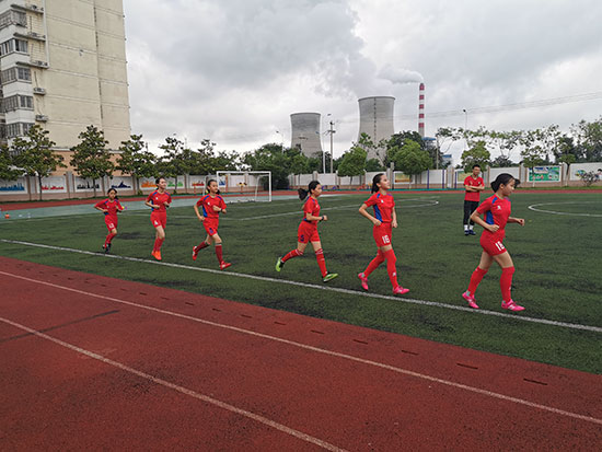 五一小學女足隊正在訓練。 王海涵/攝